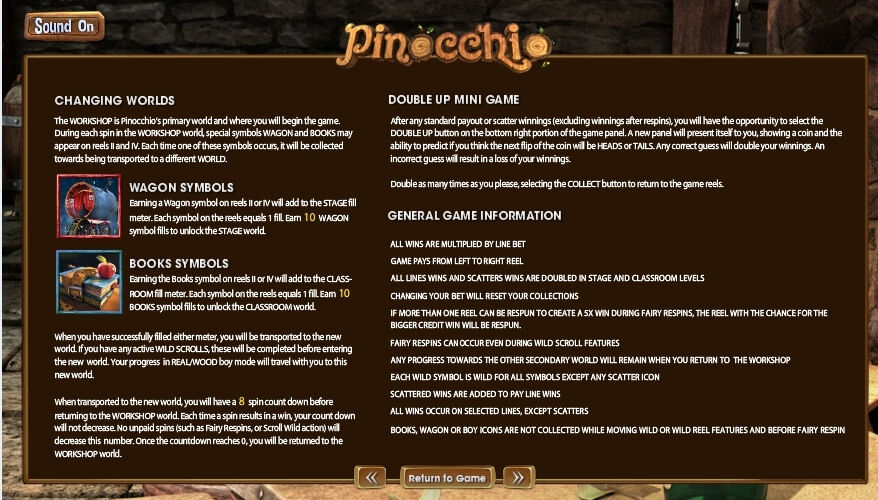 Visual effects are so good that you can’t tell exactly, if this is the game, or it is the cartoon! Just like every other modern game, this project can be launched on any device you have. It can be anything – from personal computer to mobile phone or tablet. The only requirement is to connect to the internet. The player can launch the Pinocchio online for free. The trial version contains every aspect of the original game. But to get real money out of this project, the gamer should sign up through developer’s website. It will be the only way for you to sign in with the use of the same profile on any platform you have.