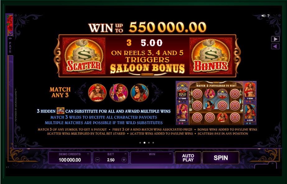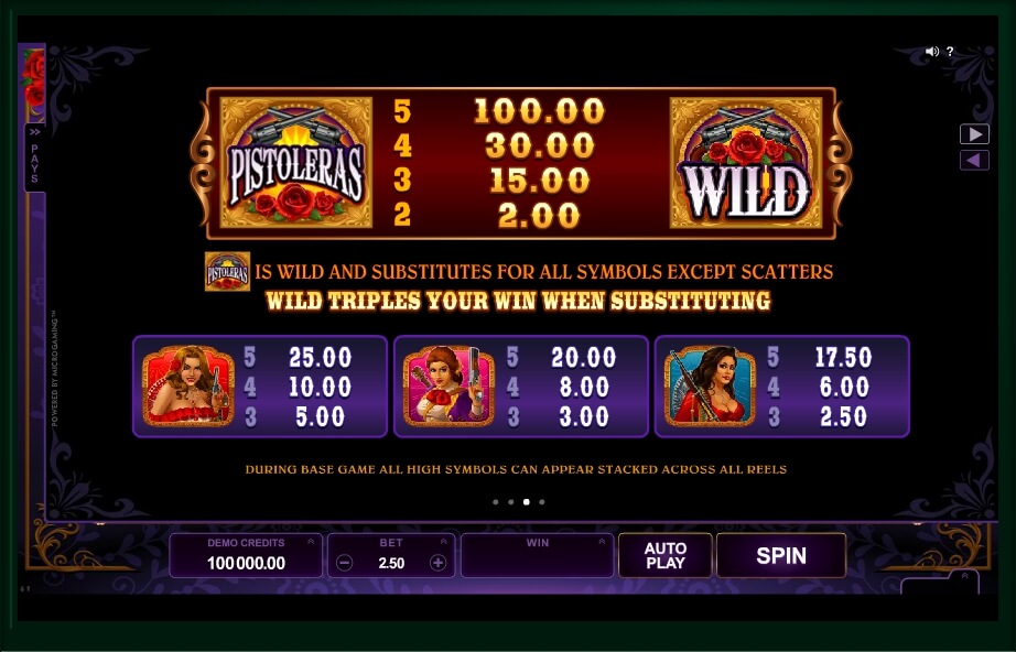 Hola! We wish to tell you about a breath-taking video slot that is dedicated to the ”Girls with guns” theme. (In Spanish – ”Chicas pistoleras” – is a conventional subsection of low-budget movies, where the roles of ”cool guys” are performed by women.) If you like to re-watch such movies as “Bandits” (*Western, produced by creative Luc Besson. The main roles were played by the best friends – Penelope Cruz and Salma Hayek.) and ”Wild Wild West” (*Also the western but the sci-fi (science fiction) one that is directed by Barry Sonnenfeld.