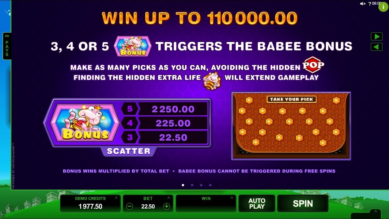 A Bee in the Nurse Suit acts as a scatter in the game. This is the only symbol that Wild’s action does not cover, and it can occur on any reel. 3 or more scatters will give you 15 spins, each of which can triple your bets.