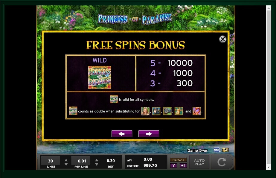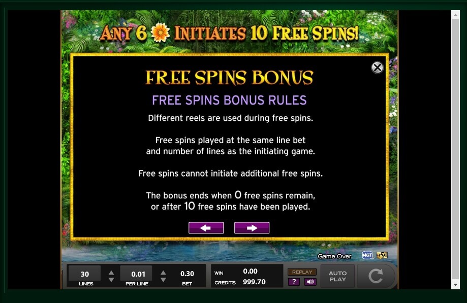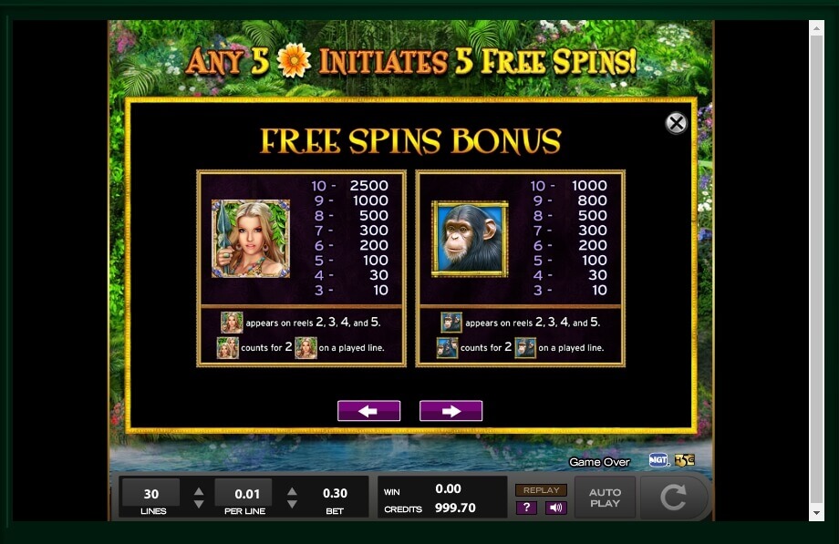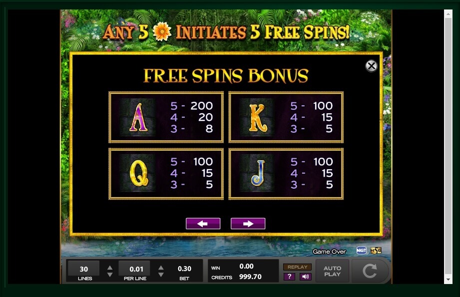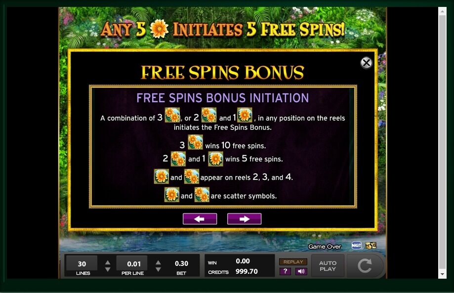 If the player finds a beautiful flower in the jungle, then he will take part in drawing free spins using the money of an online casino. It’s a great way to win extra credits and get positive emotions. In addition, the video slot offers 300 thousand coins to the winner.