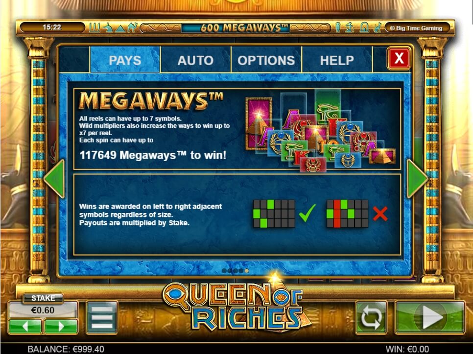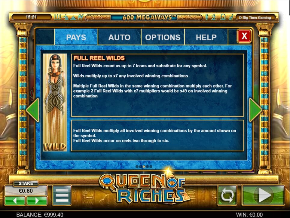 Developers of gaming equipment from the Big Time Gaming Company pleased their fans with the release of an excellent slot on the Egyptian theme. Such a plot is quite popular among producers and a user audience, as it allows diving into the history of the Ancient with its powerful Egyptian rulers, their activities. Players can directly touch this story. The video slot, introducing participants to the most famous queen of Egypt, has the name Queen of Riches.