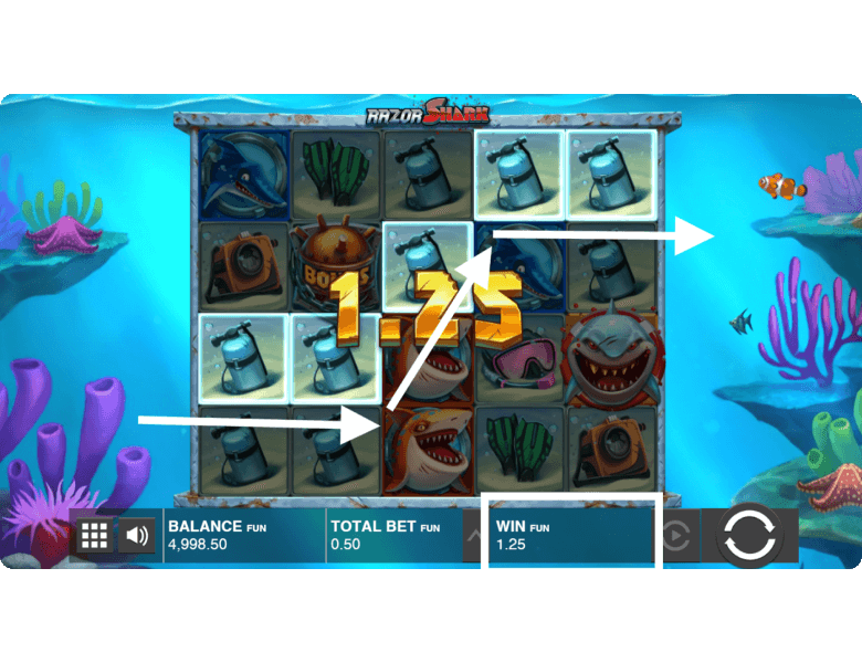 Razor Reveal Feature. If the seaweed reveals golden shark symbols, this option is triggered. Thanks to this bonus, the player can receive coin symbols with random values, which will be credited as an instant win. Additionally, the shark can transform into a Scatter, which usually triggers or extends the free spins round.