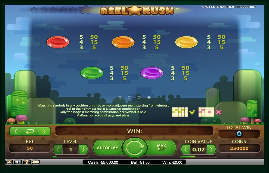 The general appearance of the Reel Rush slot machine creates an intrigue and provokes to press the button help to understand – what needs to be done and that will be farther. Do you like sweets? Not only women, but also men for certain will answer to this question positively. But even if is not for sure, then precisely nobody will refuse the juicy renewing lollipop, especially if together with bright candies you are able to catch a quite good scoring of real money. And don’t forget, there are sweets but no calories!