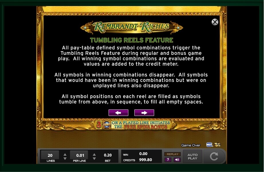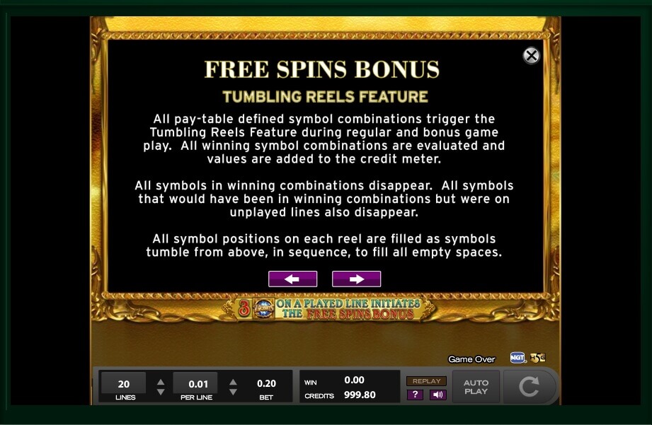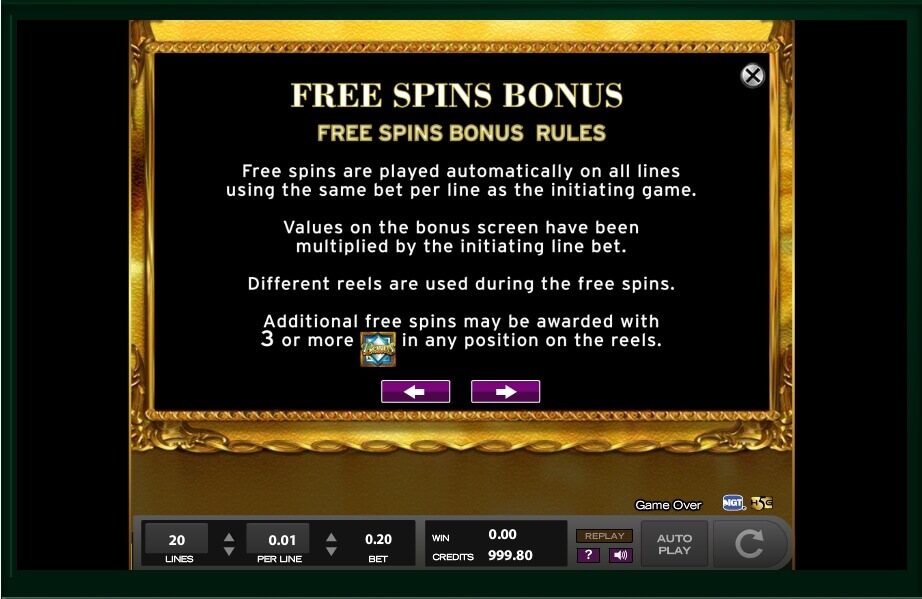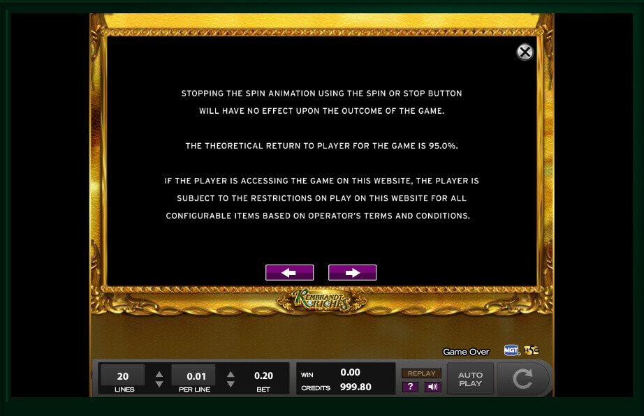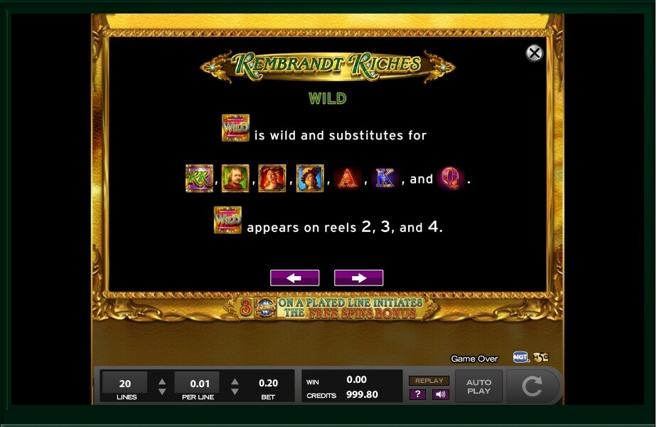 The main part of the game window is a field that consists of 5 game drums and 20 available lines. Here all the time there are thematic symbols that were executed using modern technologies. Also, in this slot sometimes there will be pictures that were painted by the legendary artist.