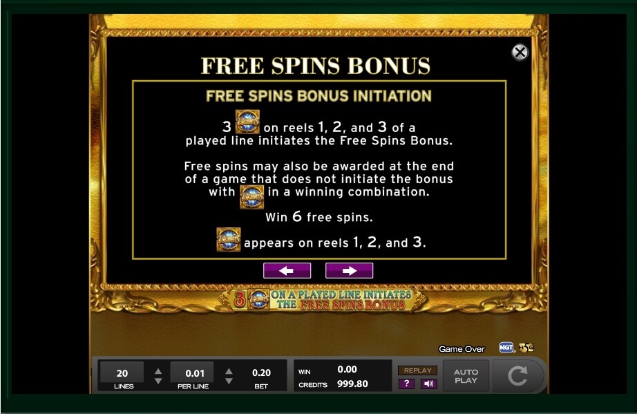 To get 6 free spins the player needs to “catch” several bonus images on 1-3 reels. The number of such rotations depends on the number of images that have activated this option. During this round, you will not spend money, since the bet will be made by an online casino. If the screen lacks an element for the combination, do not get discouraged.