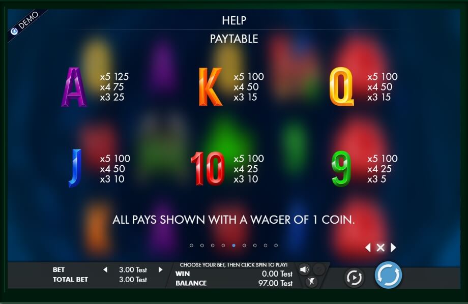 With the help of additional buttons the participant can turn off the sound effects and also open the theoretical section with the “?” button. Here is a table of payments, as well as the rules of the game. Two round keys are on the right side. The blue button activates the normal round; the second function activates automatic spinning. Each guest can enjoy this video slot in our game portal.