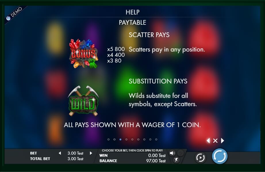 The stylization of the proposed slot machine will surprise even experienced players. Amazing graphics of the elements, the pleasant background music, full match to the game theme, funny animation and thoughtful plot will draw attention of all participants. It’s about precious crystals that are in the depths of the cave. None of the seekers have visited this place for many years.
