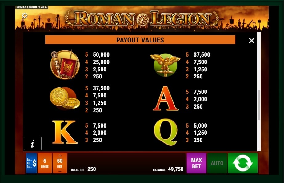 It is depicted against the background of the Roman army, which has conquered many cities and settlements. There are 5 active drums in the center and the same number of paylines. Thanks to the dark background, game characters look more vivid and interesting. The slot machine will present a fascinating gameplay, during which you will enjoy positive emotions.