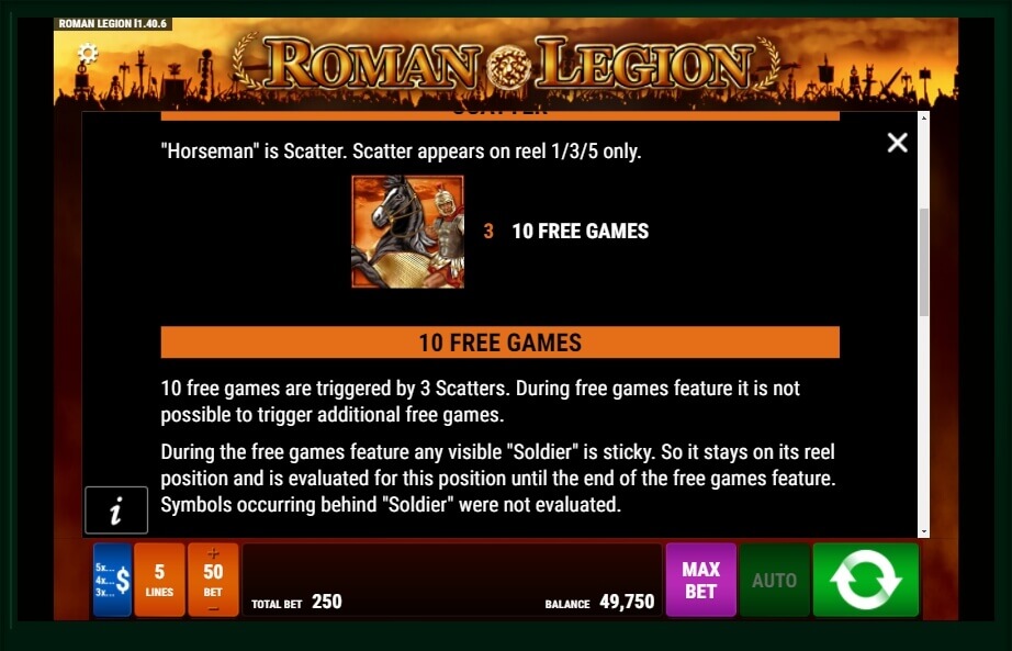 Since the main prize is 25 million, each symbol will give generous payments. The Centurion will serve as a joker, so it can replace simple elements during the game process. If the player is lucky and collects 3 scatters anywhere on the screen, then he/she will get 10 bonus rotations.
