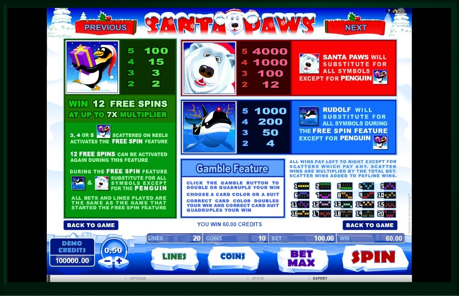He is a scatter.); the killer whale wore on its head a thin red bezel with brown branched horns of a young deer and a brightly red bow-nose (Rudolph); and the large smiling portrait of the polar bear (his aka is Greg). (A note: Rudolph and Greg are 2 Wilds.) 3,4 or 5 Simons appeared down on the reels will bring you the 12 free spins. (Notice: There are no multipliers for the growing up your wins.) We like to admit, that both of the wild symbols are activating in any type of games.