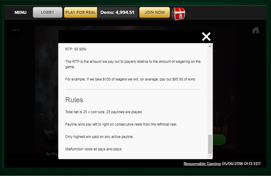 First, the player must open the game parameters section by clicking on the corresponding button. Here in detail the nuances of the game process are described, as well as symbols and their coefficients. After reading the theory, the user should place a bet by clicking on the “coin size” button. In the lower right corner you will find a long green button that activates the spinning.
