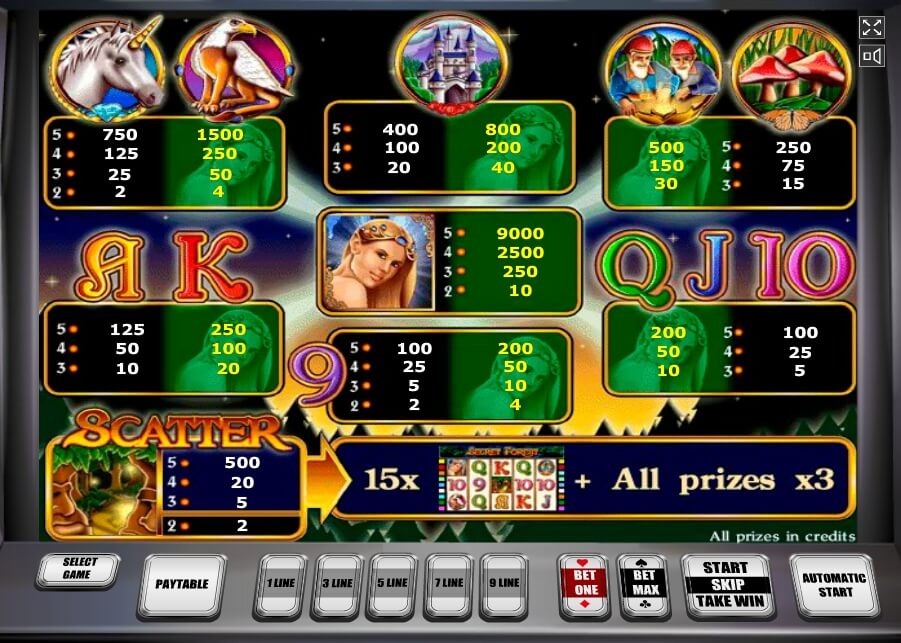Please note that this mini-game can be restarted. Risk-rounds are available for all products of this manufacturer. Video slot Secret Forest is no exception so you can try to double your last win. The main prize is 9 thousand coins.