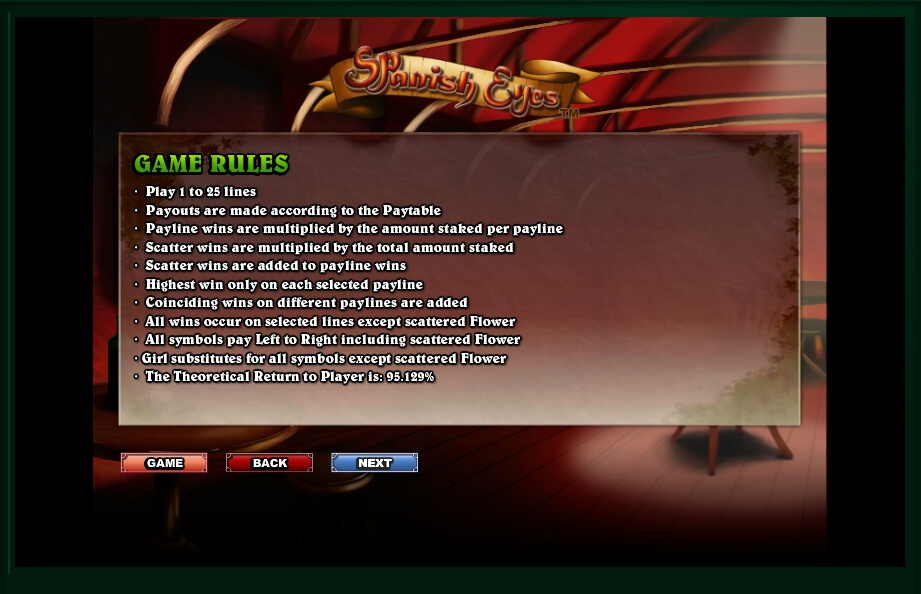 To your consideration is Spanish Eyes universe. This video universe is exceptionally prominent and has been endorsed by a huge number of clients. The fundamental topic of a diversion is Spanish moves; this gaming machine has 5 reels and 25 lines. The biggest reward on hold (in coins) that can be acquired are 1250, wagers from $ 0.01.