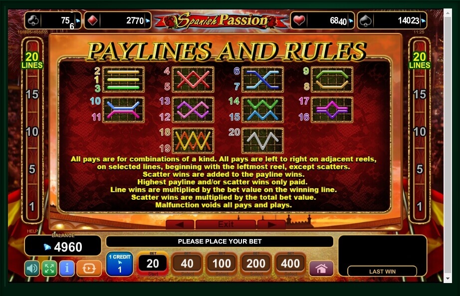 The rules of the game are very simple and you can play this game with the huge satisfaction. There is not any registration and also there is not any downloading in this Spanish Passion game. You should only enjoy with the process of the online game and try to win as much money as you can. It is not very easy, but if you have the only goal, you will reach it.