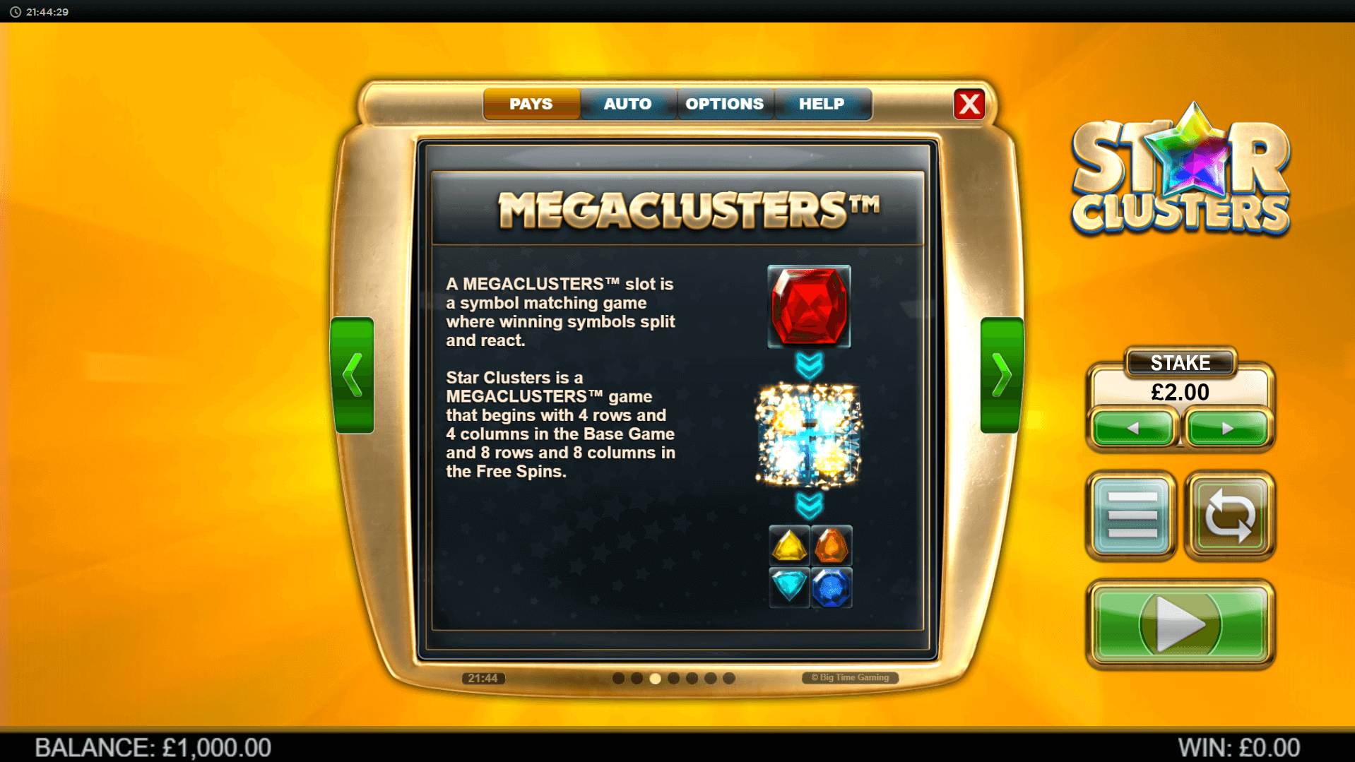 With thousands of slots under my belt, Star Clusters Megaclusters stands out thanks to its unique mechanic. Megaclusters give you a rare feeling of wild chaos, as the grid changes, cascades keep coming one after another, and the wins grow before your eyes.