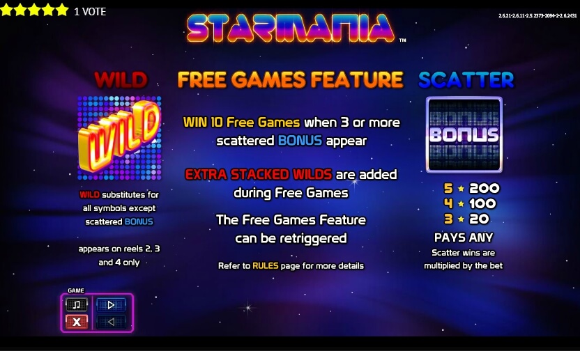 Every gamer does enjoy a high level of smart technologies, attractive gameplay and dynamic slot machines in that slot. You could rate the game! Share this slot on the Facebook, Twitter and G+ public pages. NextGen software, one of the best developers in the industry, so the game process will be on the high level. Feel yourself famous and amusing while playing Starmania video slot!