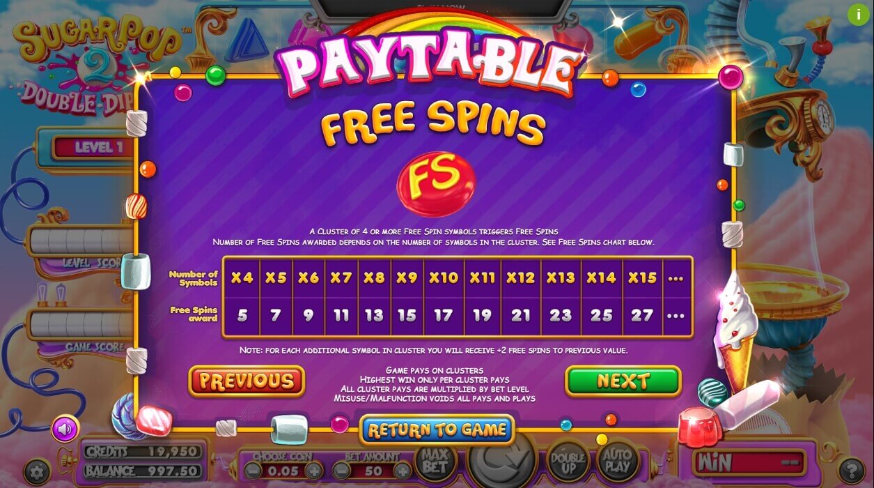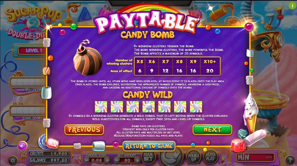 This is an exciting and original game, which is not like other slots. We can say that SugarPop 2: Double Dipped is similar to a bright fairy tale that tells about the world that consists of sweets and desserts. This style is guaranteed to attract attention. We recommend this slot machine to all visitors who want to get positive emotions and relax.