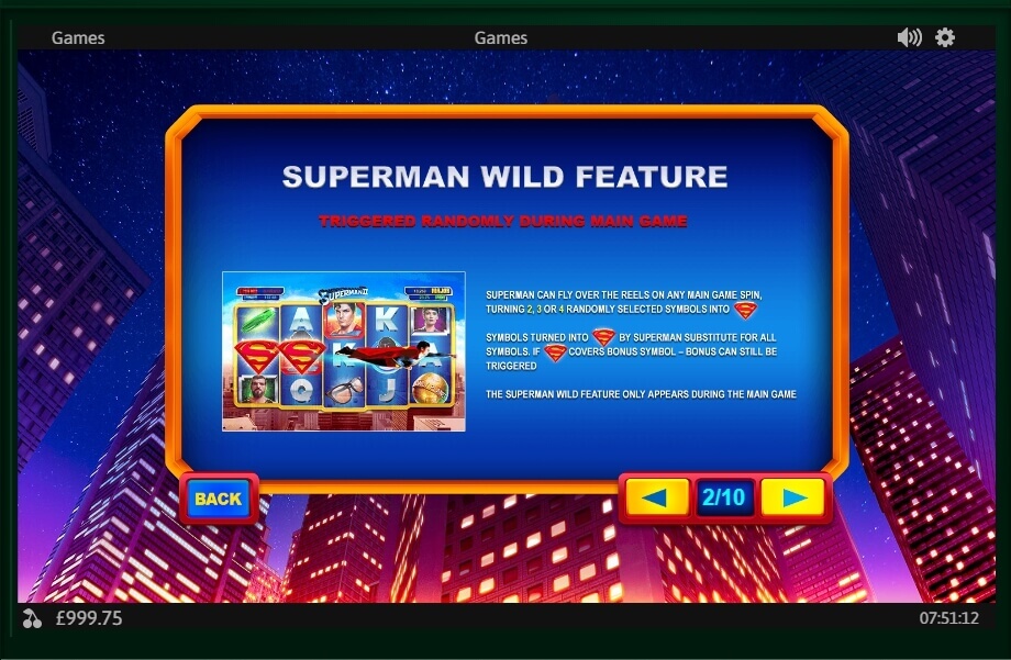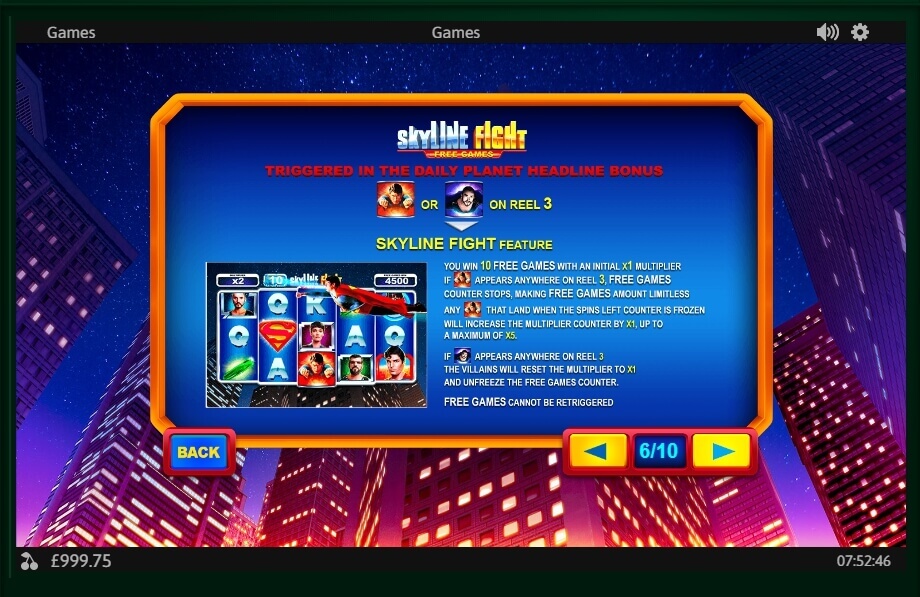 The gambling slot is full of engrossing characteristics and entertainment. Let’s start with the Wild icon: when the player gets it on the reel, Superman is flying over the reels and can turn from 2 to 4 icons into Wild. If to speak about Bonus icon, it gives five games at once.