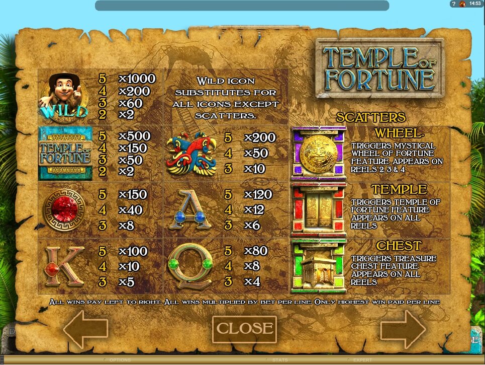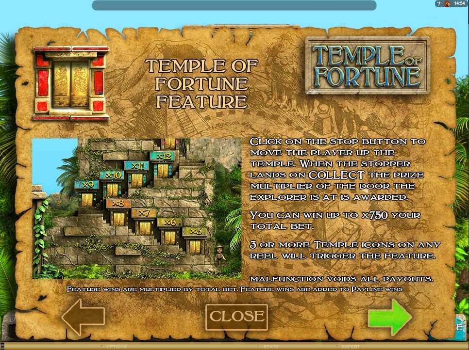 The Temple of Fortune casino gives a player a new way to enjoy an evening. Developers from The Big Time Studio took inspiration from the Aztec history. They decided to show the story about an ancient treasure in the Indiana Jones manner. Just like in the good old action movies, you will get an opportunity to witness a culture that is over ten thousand years old. is The plot is represented by a legend about a golden city. Only the chosen one can find it. May it be up to you? Try your luck in the biggest project on the Web. Creators used the power of the best designers just to ensure that you will have a chance to experience the best adventure of your life. You can see how many details every aspect of the game has. It’s not only about background image, but also about the game characters. They are represented as symbols of the Aztec culture. No matter how good the graphics is, you can still play it not only on your PC, but also on any handheld device. Every element of the game is perfectly adapted to any touch screen. The trial version is also pretty interesting to play. It contains everything from the original project, except the ability to earn money. However, it’s not a problem – just sign up through the website and you will be ready to go.