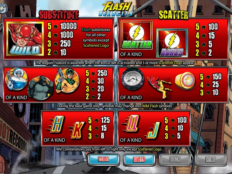Description of The Flash: Velocity video slot game symbols