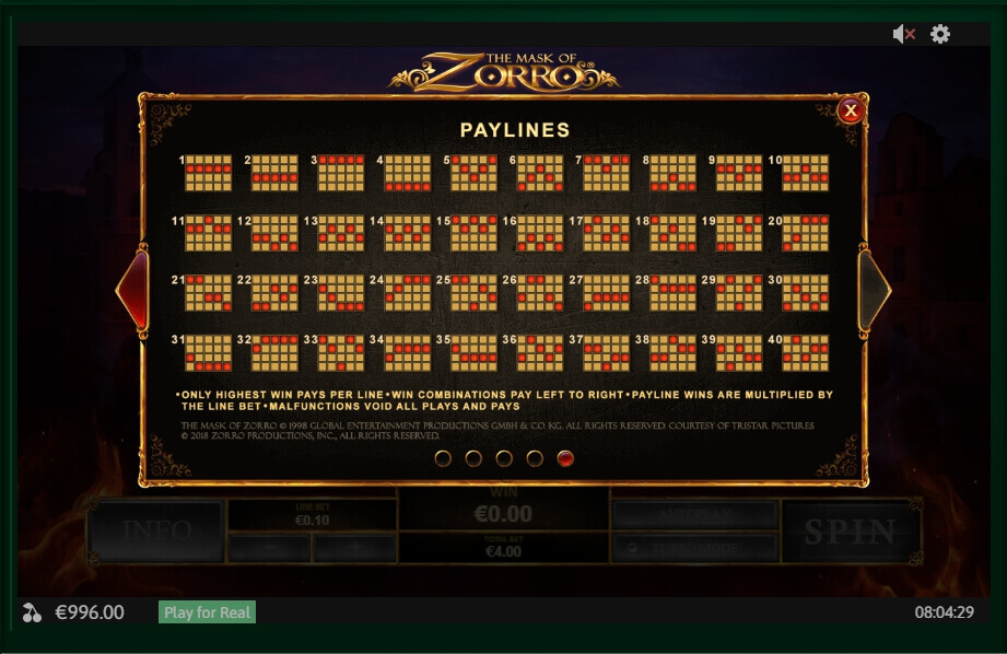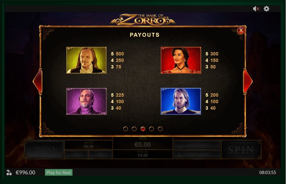 The Mask of Zorro slot game is a wonderful re-creation of an old film about people’s favorite Zorro. The hero in a black mask leads you through the gameplay: helps to create more Wild icons with acute epee and to get many prizes in the secret cave.