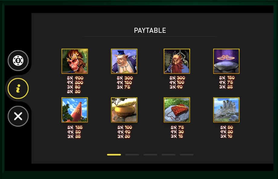 During the spinning on the five reels thematic pictures directly related to the Chinese novel will appear. The main role of the plot is assigned to the serious and dexterous King of the Apes. As in most GamePlay slots, here all the lines are active by default and you can not change it. Instead, the participant only needs to bet on the round.
