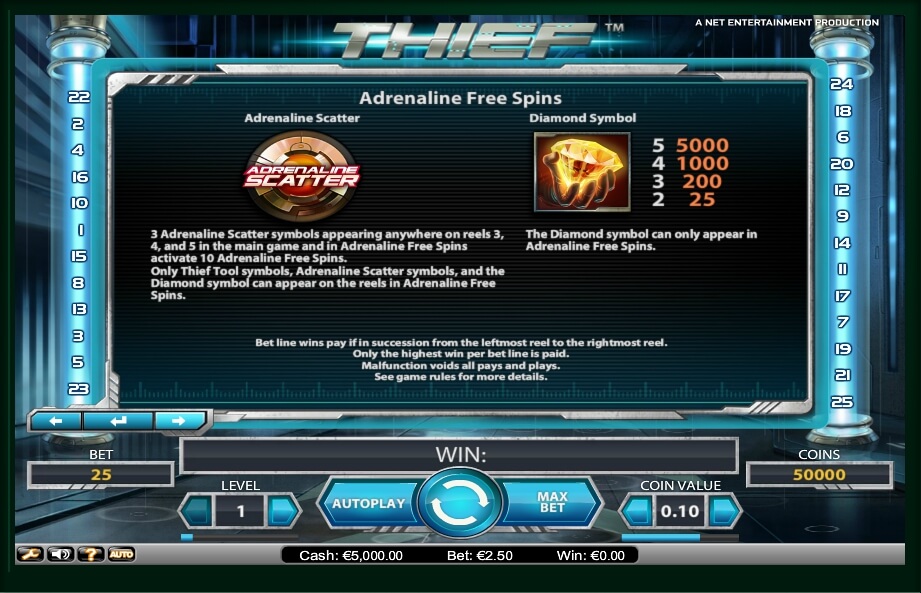 The fundamental objectives of the story of the Thief slot machine will be two vaults, which are extras in a view of free spins. For their actuation there is Scatter of two assortments: Blue – initiates free twists, Red – enacts Adrenaline Free twists.