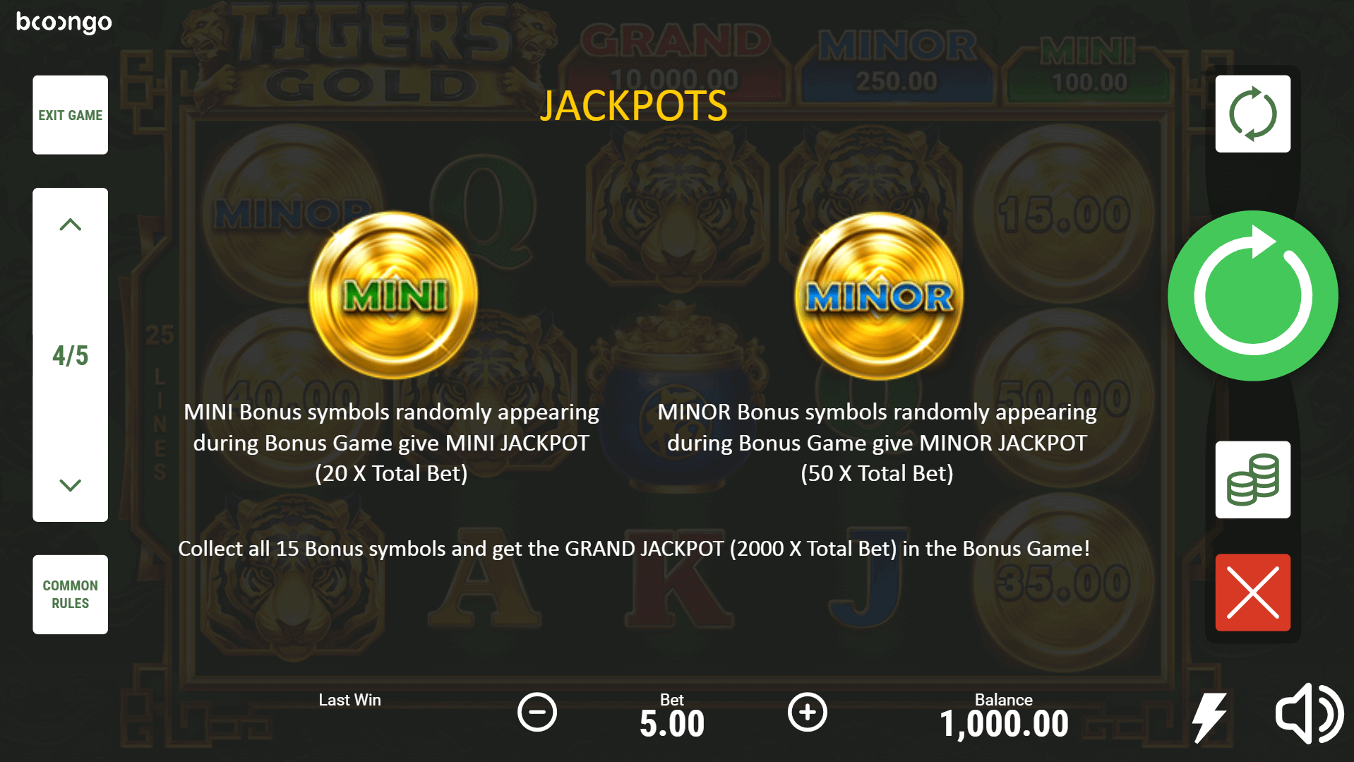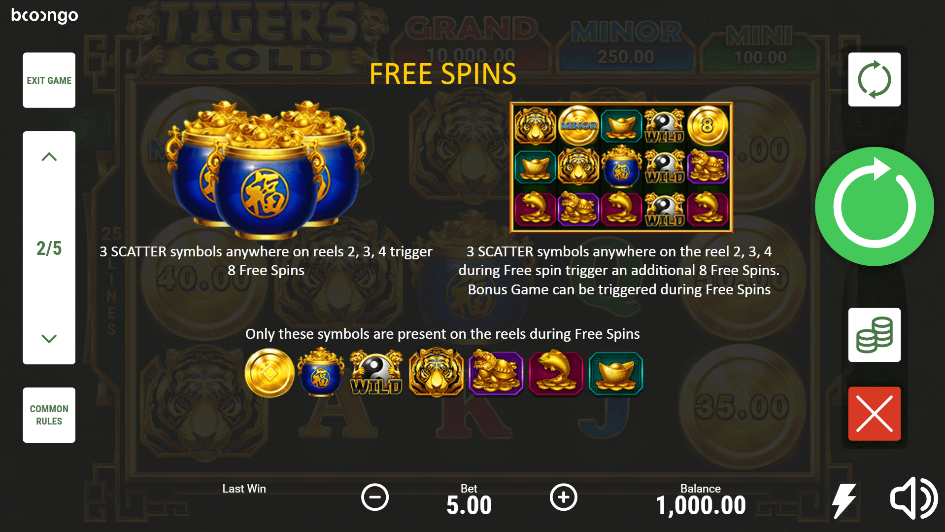 | Tigers Gold Hold and Win | 95.00% | medium | 2,000x | ||