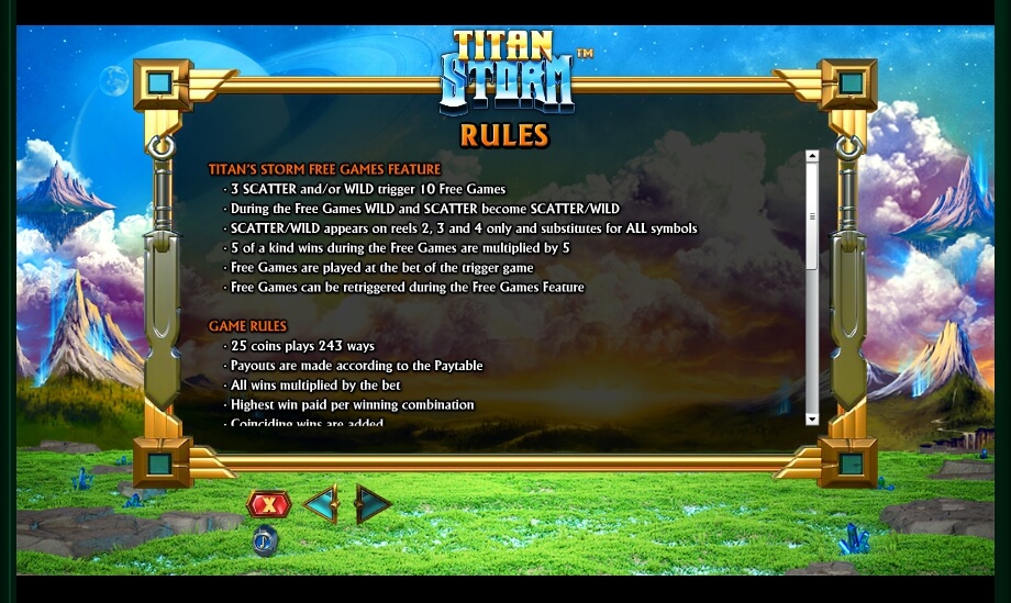 The principal pluses of the Titan Storm Slot: a fascinating round of prize-winning spins with big additional multipliers, beautiful design with the comfort of a player control bar, fine video graphics with bright animation. In a word, a delightful game which needs to be tried! The Big win of real money is waiting for you here.
