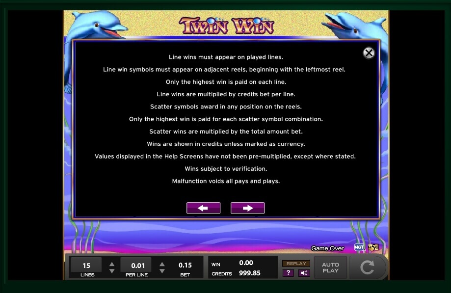 However, that is not everything interesting that is waiting for those who decided to play such a bright slot game! Scatter symbols can be met only on the second, the third and the fourth reels in the game. They will give the player a chance to boost cash x100 times! There are no free spins and well as players won’t be able to find a bonus game in the list of features available in Twin Win, but it doesn’t make this game less interesting at all!