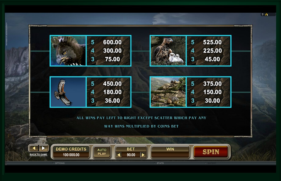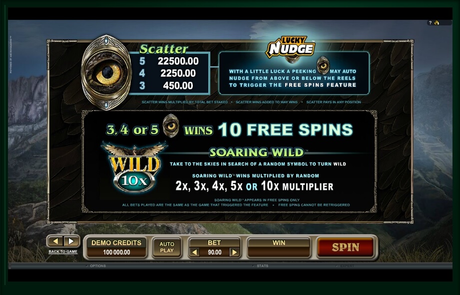 The gamer can get free spins with two eagle eyes to achieve ability to enter mini-games and they are important for the jackpot winning. It has 7500 coins for a lucky enough player. Chase your dream, launch the project from day to day and you will definitely win!