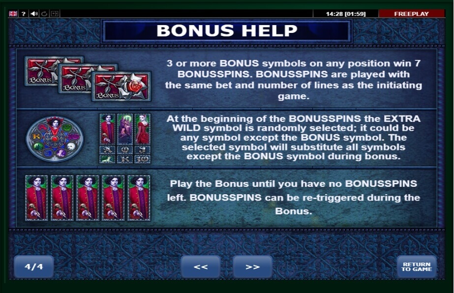 The second option starts the round in the automatic mode. In this case, rotations will be made without any user intervention. In the upper left corner, there are additional settings. The development team managed to create a dangerous and at the same time interesting gaming machine that tells about terrible vampires.