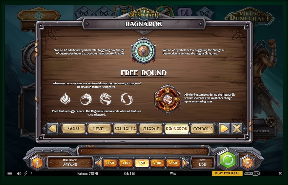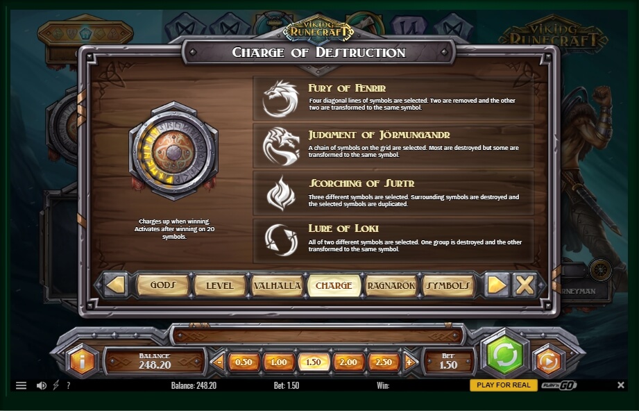 If during the game round it is possible to collect prize clusters involving all five types of stone runes, a bonus game with the Fortune wheel is launched, where you can win additional prizes. The Charge of Destruction. If the result of the round was able to use 20 characters and completely fill the counter of the destructive charge, the re-rotation with one of the 4 prize options is started.