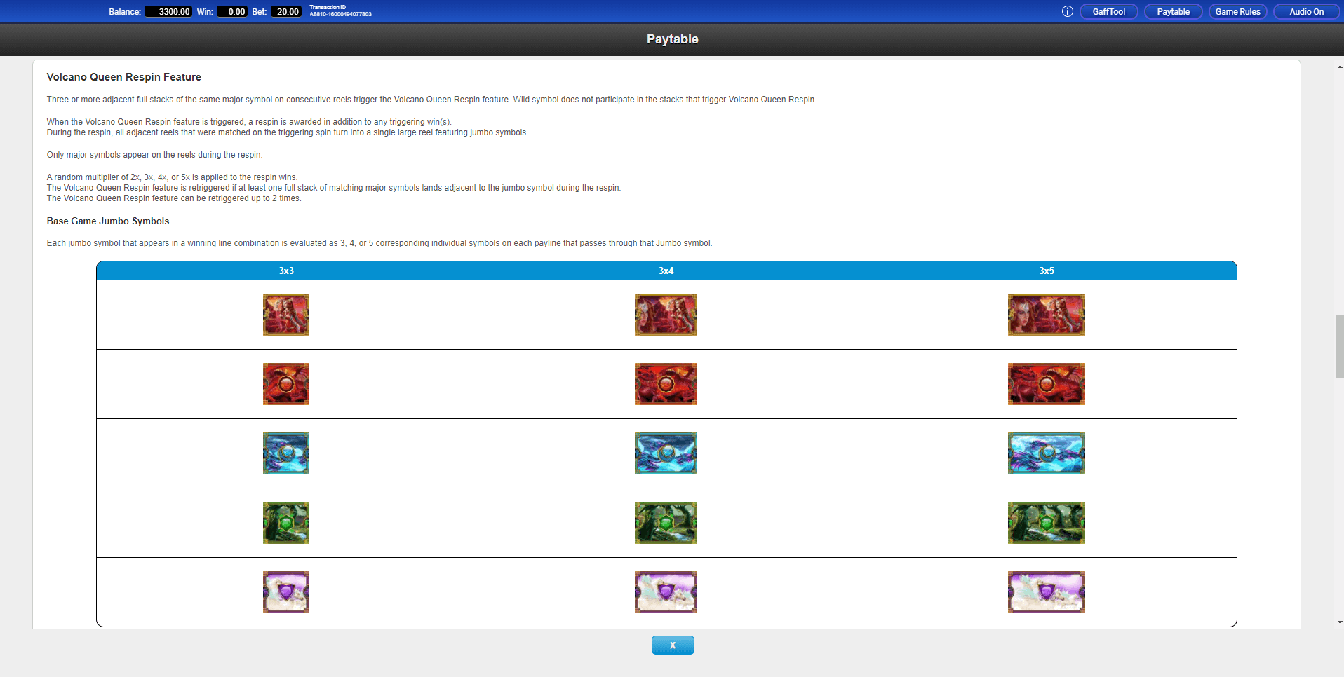 Volcano Queen Diamond Spins Slot Game Info & Features