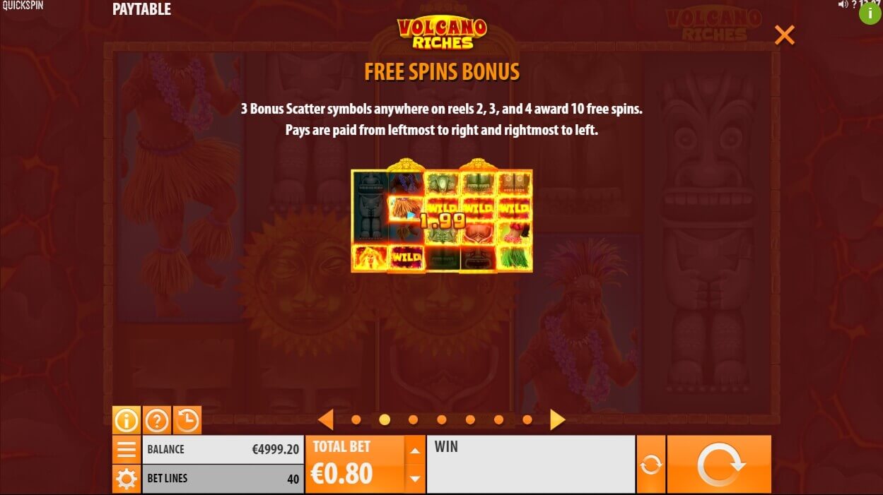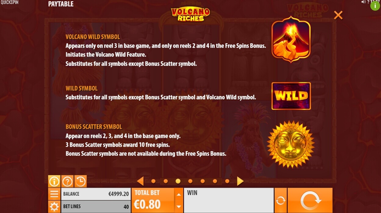 Here the guest will be awaited by a convenient and functional control panel. Volcano Riches also offers quality modern graphics that are filled with animations and 3D images. In a word, you’ll get a lot of pleasure and emotions!