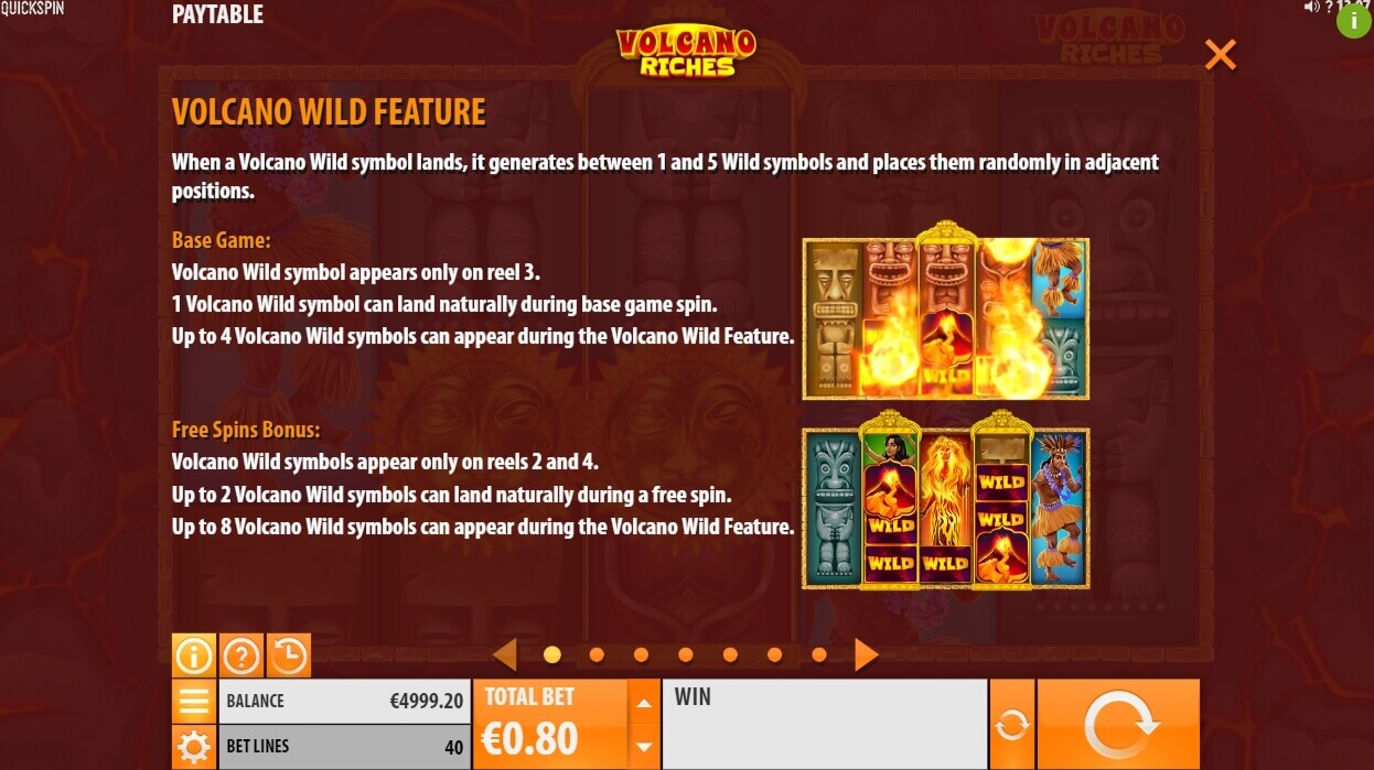 Wild (volcano) serves as a special joker that replaces standard icons during the game session. It also launches the “Volcano Wild” bonus.