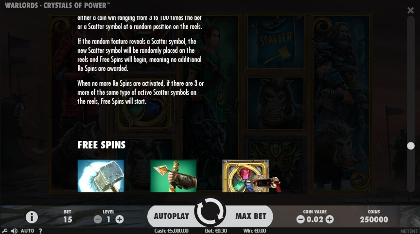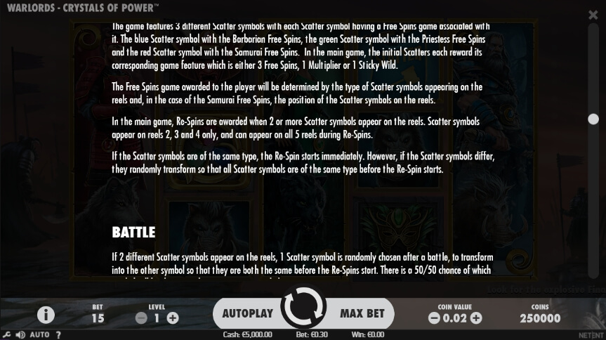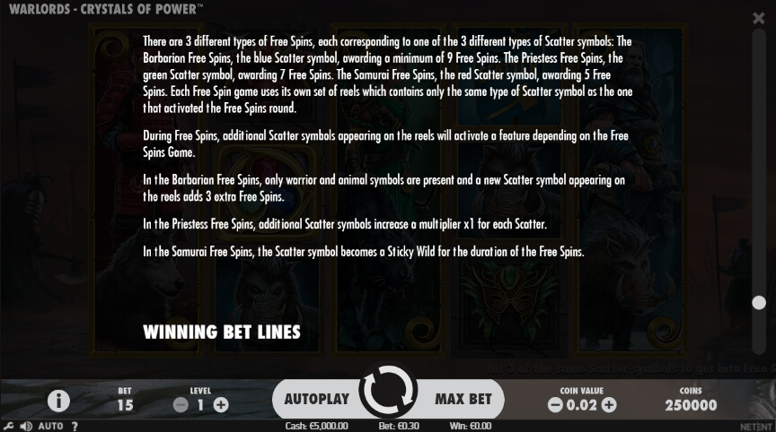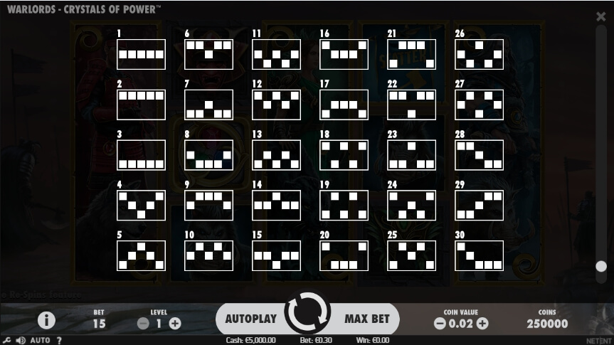 Warlords: Crystals of Power online is the game, which can help you to become rich. But you need to customize some aspects of the gaming process. To do that, use the control panel right under the gaming field. Click on the “Coin Value” option to change the amount of money to bet. If the gamer wants to choose the correct level of risk, he must change it in “Level” section.