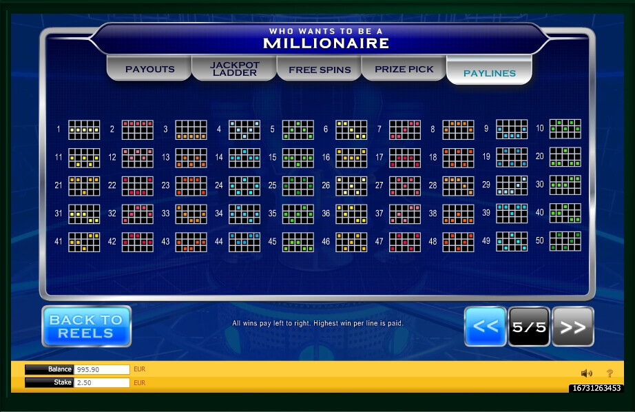 To sum everything up, Who Wants to Be a Millionaire is a good pick for the show-lovers, old-school online casino gamblers and for newcomers. Being available for regular real-money gambling via online instant play and for stand-alone desktop application for your PC or laptop, aside from that, there is always an option to play it for free via play for fun mode with no additional download required or registration included. With a thematic blue neon background and overall design from the original show, and the soundtrack from it, this video slot reminds you of the same spirit from classic TV series and might take you away for an hour or two.