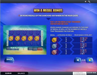 Three identical medals in any position on the screen launch the Medal Bonus. The player simply needs to click on one of the medals to find out what the payout is supposed to be.