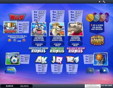 All the sibs that appear on the playing field correspond to the chosen theme. But the player can also catch special pictures: Wild (cup) and Bonus (bronze, silver and gold medals). Wild can replace other pictures and add to the chain.