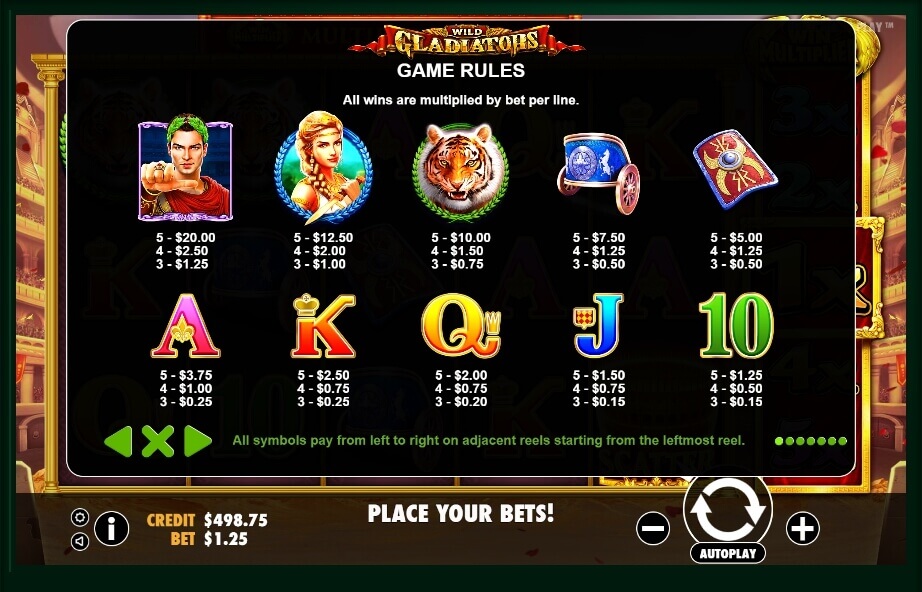 All the actions of the game unfold in the Colosseum that is the main symbol of the powerful Roman Empire. This is evidenced by the corresponding graphics, the elements of which are columns, as well as thematic game symbols. The entrance to the Colosseum tells the player about the place of the battle.