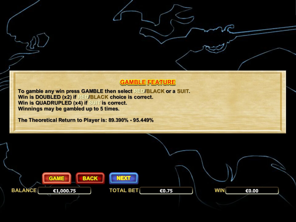 There are usual images on the video slot, icons of the special characters (Juliana, Zorro’s Squeeze), risk-game by chance, free spins, additional multipliers and 5 bonus games of several types. All of the unique features and decorations make this game special.